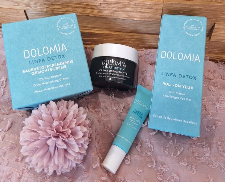 Das Dolomia Set kombiniert zwei perfekt aufeinander abgestimmte Pflegeprodukte für ein frisches, vitales Hautbild. Die sauerstoffspendende Gesichtscreme versorgt die Haut mit neuer Energie, spendet Feuchtigkeit und lässt den Teint erholter wirken. Der Augen Roll-on belebt die empfindliche Augenpartie, kann Schwellungen mildern und sorgt für einen sofortigen Frischekick.