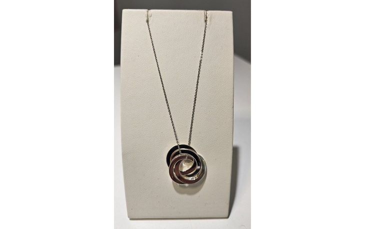Dieses silberne Collier hat vier gravierbare Ringe, durch die dieses Schmuckstück zu etwas ganz Besonderem werden. Eine einzigartige Möglichkeit, Namen oder Erinnerungen festzuhalten.