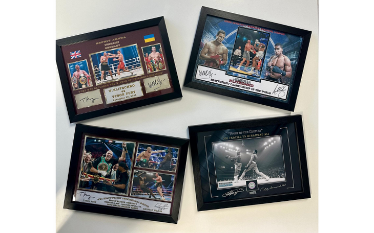 Dieses exklusive Set vereint vier eindrucksvoll gerahmte Drucke, die einige der größten Momente der Boxgeschichte festhalten. Von historischen Duellen bis zu modernen Meisterkämpfen zeigt diese Sammlung den unvergänglichen Geist des Schwergewichtsboxens.Mit dabei sind die legendären Begegnungen Wladimir Klitschko vs. Tyson Fury, Anthony Joshua vs. Wladimir Klitschko, Tyson Fury vs. Deontay Wilder sowie der legendäre „Fight of the Century“ Joe Frazier vs. Muhammad Ali. Jedes Stück zeigt ikonische Kampfszenen und trägt die Reproduktionen der Originalsignaturen der beteiligten Champions.Diese Zusammenstellung ist eine Hommage an Mut, Disziplin und den unerschütterlichen Willen, der den Boxsport über Jahrzehnte geprägt hat. Ein beeindruckendes Sammlerset für Sportliebhaber, Boxfans und alle, die die Größe dieser Legenden würdigen möchten.