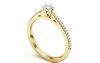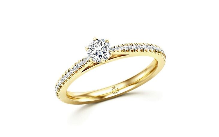 Im Mittelpunkt steht ein funkelnder Brillant von ca. 0,015 ct in der Qualität w/vs, der in einer klassischen 6er-Krappenfassung sicher gehalten wird. Diese Fassung ermöglicht einen optimalen Lichteinfall und bringt das Feuer des Steins besonders schön zur Geltung. Ergänzt wird der Solitär durch einen feinen Seitenbesatz aus weiteren Brillanten, die dem Ring zusätzliche Strahlkraft und Eleganz verleihen.