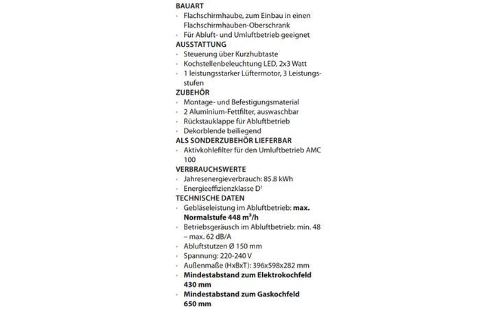 - Hervorragende Absaugleistung, für frische und fettgeruchfreie Luft im Kochbereich.