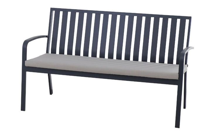Die 2-Sitzer Bank „Peros“ vereint modernes Design mit hohem Sitzkomfort und ist die perfekte Ergänzung für deinen Garten, Balkon oder deine Terrasse. Mit ihrer eleganten Farbgebung in Anthrazit und den naturfarbenen Kissen fügt sie sich harmonisch in jede Outdoor-Umgebung ein.