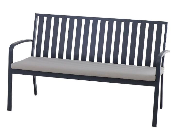 2er Bank Peros, Gestell und Flächen aus Aluminium pulverbeschichtet in anthrazit, Kissen aus Polyester 265 g/m² in natur