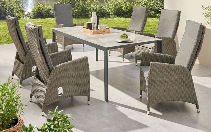 Gartenmöbelset »New Jardel«, 7-teilig, 6 Stühle, 1 Tisch, Aluminium/Kunststoffgeflecht, grau