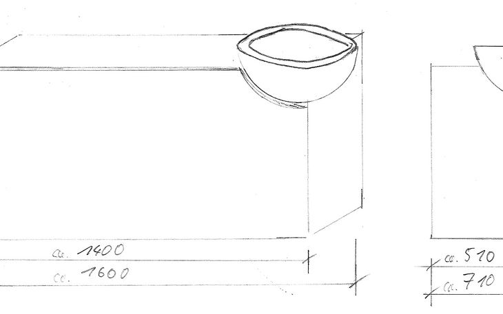 Maße incl. Becken: ca. 160 x 71 x 91 cm