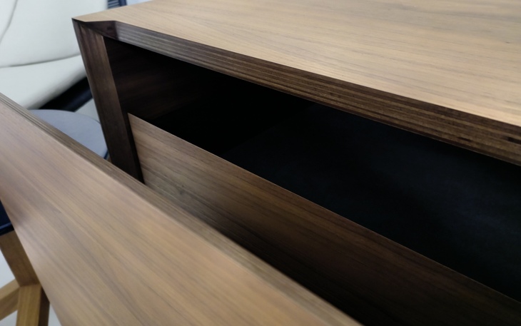 Gefertigt aus hochwertigem Multiplex-Holz in edler Nussbaum-Ausführung, überzeugt dieses Möbelstück durch seine natürliche Maserung und warme Ausstrahlung.
