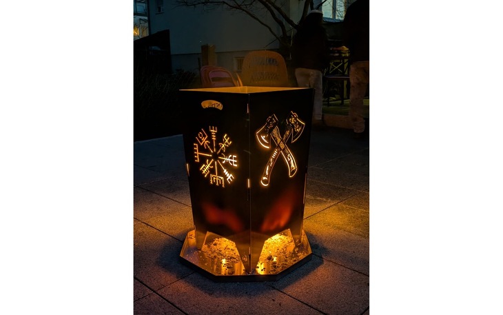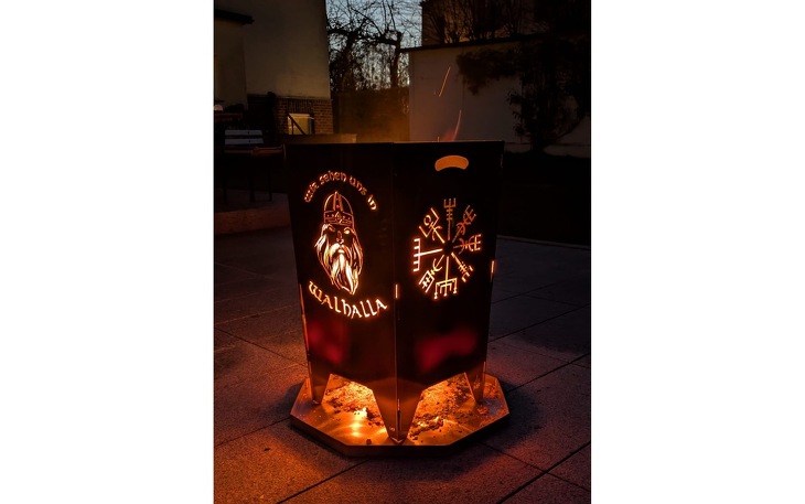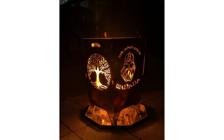 Optisch wird der Feuerkorb zu einem echten Highlight: Jede Seite ist mit einem einzigartigen Motiv gestaltet, kraftvolle Äxte, mystische Runen-Zeichen, ein imposanter Wikinger sowie der symbolträchtige Lebensbaum verleihen ihm eine stilvolle Ausstrahlung.