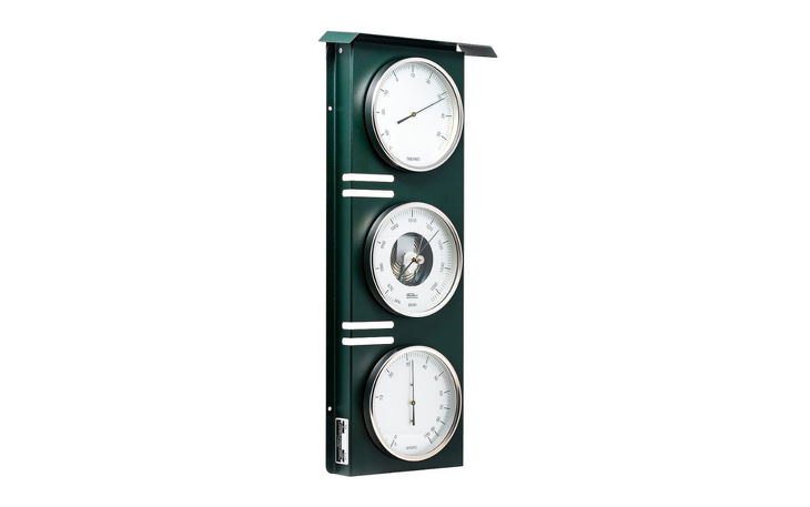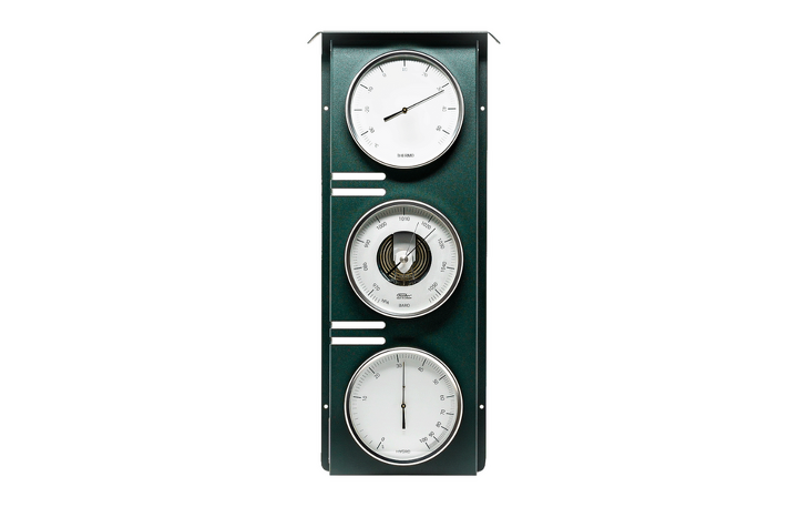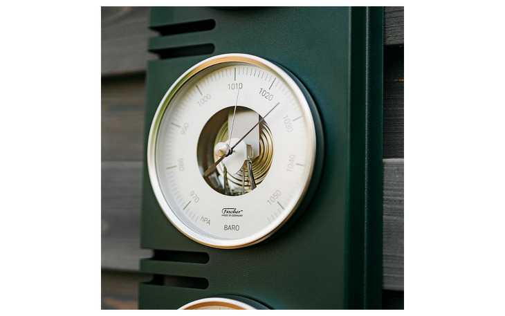 Die tannengrüne Außenwetterstation der sächsischen Manufaktur Feingerätebau K. Fischer GmbH ist auf 250 Stück limitiert und vereinigt die wichtigsten meteorologischen Messgeräte Thermometer, Barometer und Haar-Hygrometer, welche Sie präzise über die aktuellen Wetterbedingungen informieren. Aus den Veränderungen des Luftdrucks können Sie zudem auf den Wetterablauf der folgenden Tage schließen.