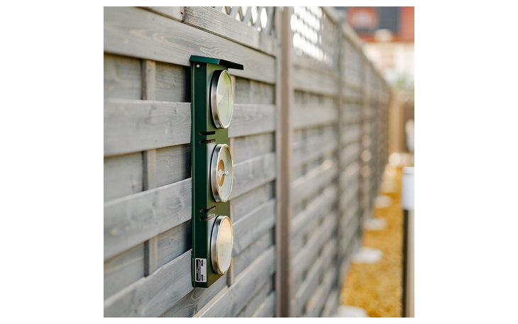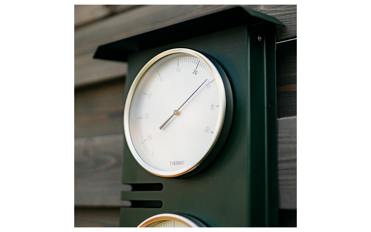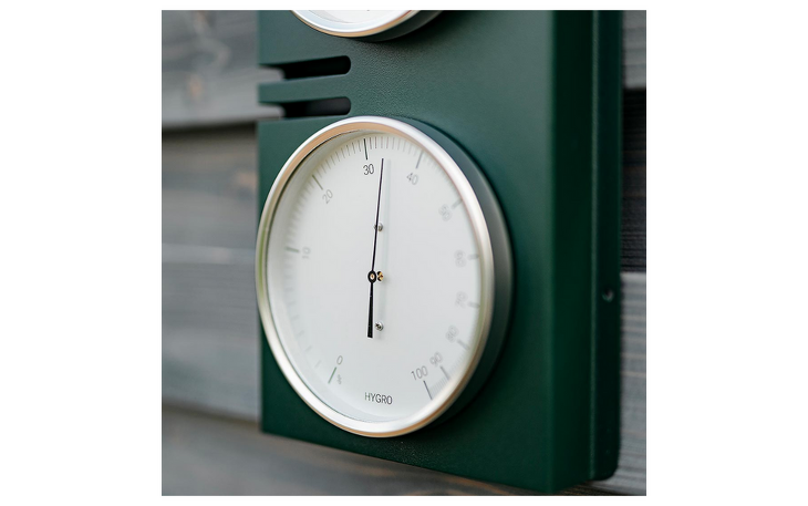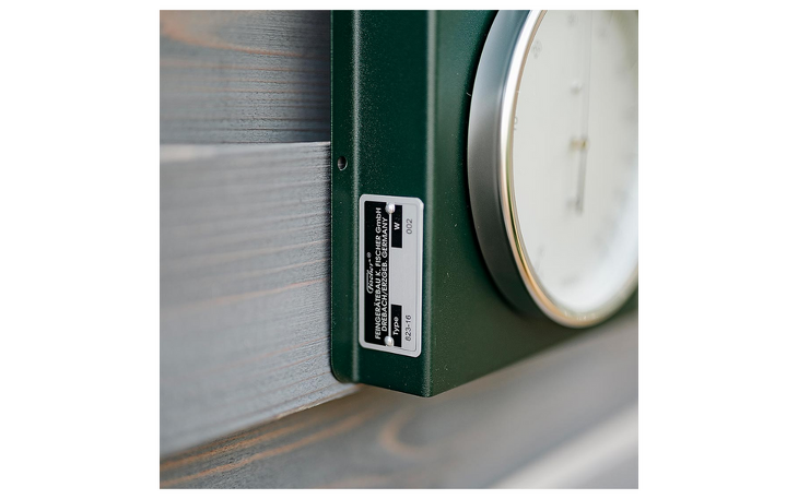 Das Edelstahlgehäuse in mattem Tannengrün ist durch die zusätzliche Pulverbeschichtung besonders widerstandsfähig und trotzt "allen Wettern". Mit einem Durchmesser von jeweils 130 mm sind die Instrumente auch aus einiger Entfernung noch gut ablesbar.