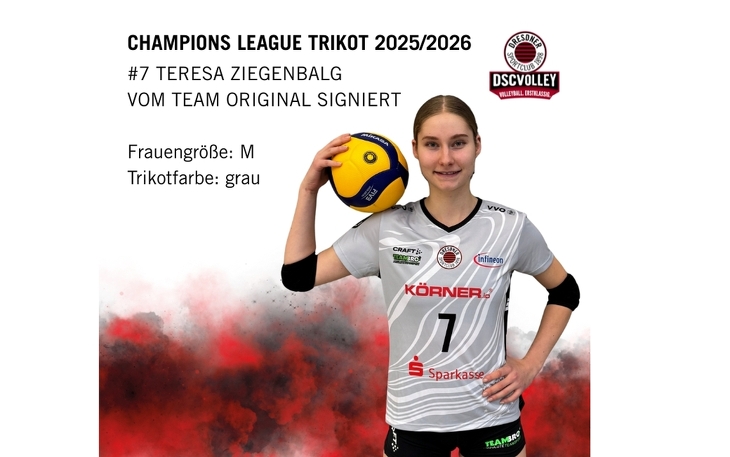 Zum Angebot steht ein Match-Trikot von Teresa Ziegenbalg (#7) in grau.