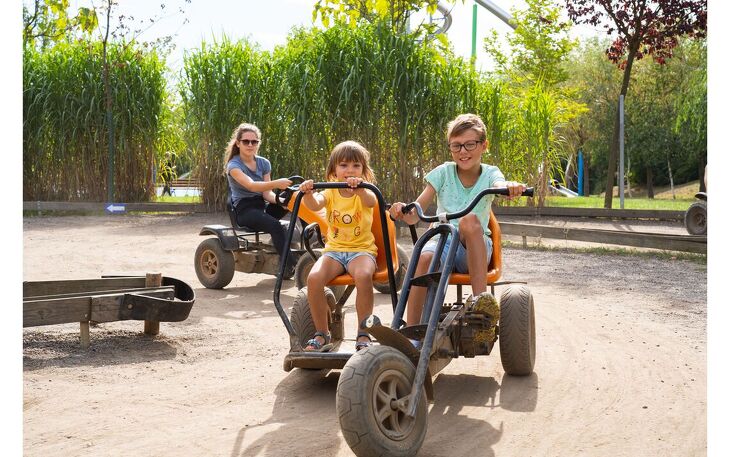 - Action & Abenteuer: Riesenrad, Wellenflieger, Nautic-Jet, Butterfly, Quads, Tretautos, Minidampfer, große Kletter- und Rutschparadiese mit 11 Rutschen, inklusive neuer Erlebnis-Pyramide (35 m Aussichtsplattform, Wendeltreppe, Spiralrutsche – eröffnet September 2025).
