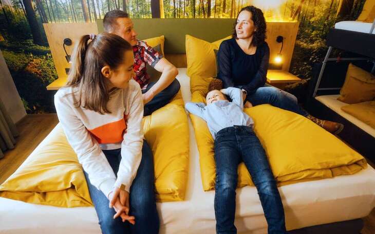 Egal ob Sommer oder Winter – oft ist ein Tag nicht genug. Wer also gern länger bleiben möchte kann im parkeigenen HOTEL AM SONNENLANDPARK einchecken. 54 großzügige komfortable Zimmer in verschiedenen Zimmerkategorien, ein imposanter Lobby- und Frühstücksbereich und eine fantastische Lage mitten in Sachsen am Tor zum Erzgebirge erwarten Sie. Jedes Zimmer ist für Urlaub mit Kindern erweiterbar und bietet so ideale Voraussetzungen für Ihren Familienurlaub. Wer sich gern am Abend verwöhnen lassen möchte ist im Hotelrestaurant herzlich willkommen. Das Abendbuffet kann direkt als Halbpension dazu gebucht werden.