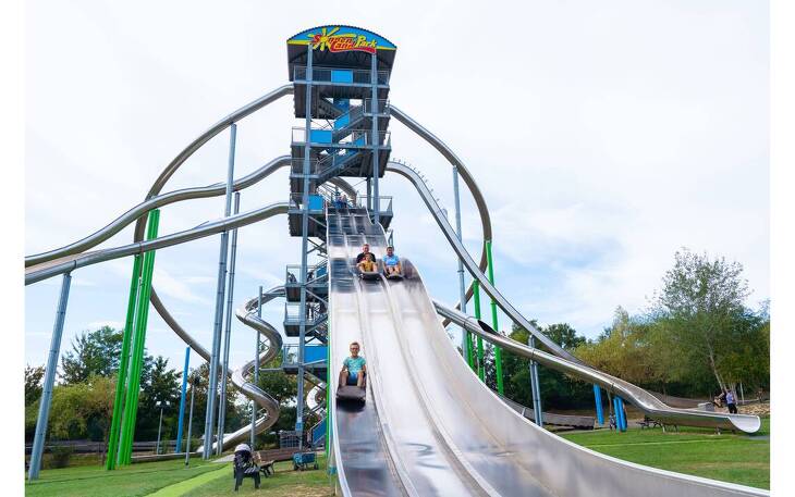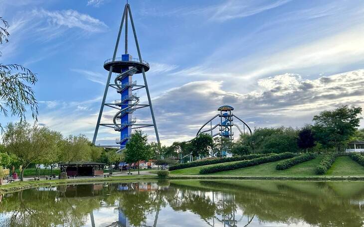 - Action & Abenteuer: Riesenrad, Wellenflieger, Nautic-Jet, Butterfly, Quads, Tretautos, Minidampfer, große Kletter- und Rutschparadiese mit 11 Rutschen, inklusive neuer Erlebnis-Pyramide (35 m Aussichtsplattform, Wendeltreppe, Spiralrutsche – eröffnet September 2025).