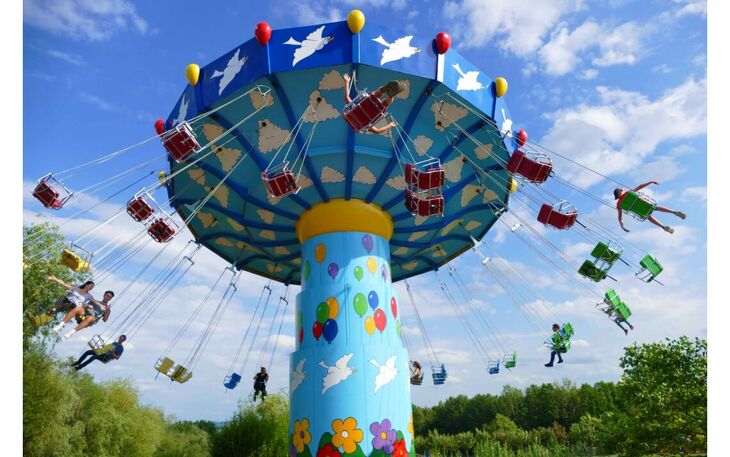 Neben riesigen Hüpfbergen, großen Kletter- und Schlauchrutschparadies, Flößen, Quads, Tretautos oder Minidampfern sorgen der Wellenflieger, Nautic-Jet, Butterfly und 3 Überschlagschaukeln wie der Komet für richtige Action. Genau wie der höchste Rutschenturm Deutschlands, der einmaligen Rutschspaß auf insgesamt 11 Röhren-, Wellen- und Tunnelrutschen garantiert.