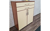Zwei geräumige Schubkästen sorgen für eine übersichtliche Aufbewahrung kleinerer Utensilien, während der großzügige Stauraum hinter den Türen zusätzlichen Platz für Geschirr, Wäsche oder andere Alltagsgegenstände bietet. Dank der klaren Linienführung und der hochwertigen Verarbeitung fügt sich die Kommode harmonisch in verschiedene Einrichtungsstile ein – von modern bis klassisch. Mit ihren eleganten Metallgriffen setzt sie zudem ein stilvolles Detail, das das Gesamtbild abrundet.