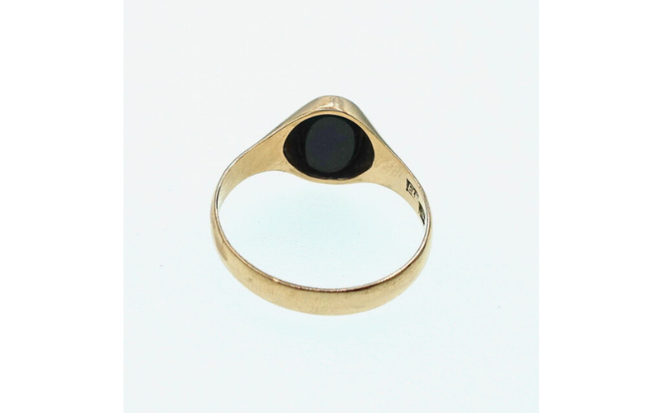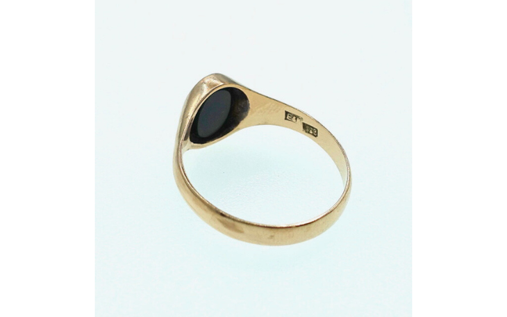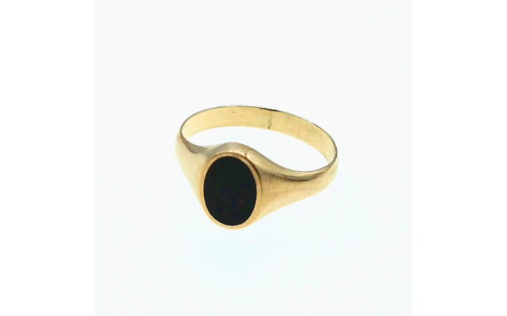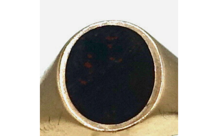 - Steinbesatz: Oval gefasster Heliotrop (Blutjaspis), opak - schwarz mit roter Sprenkelung, ca.6 mm x 8 mm
