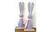 Ein Stück Dekofigur Osterhase aus Filz mit Holzfuß.