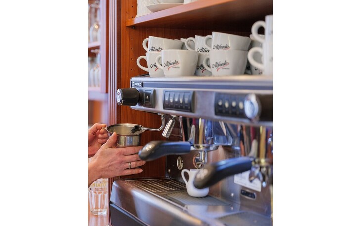 Das „Journal Café Cappuccino“ im Hotel serviert Kaffee-, Kakao- und Teespezialitäten aus aller Welt, Kuchen, Eis oder herzhafte Snacks – bei schönem Wetter auch gern auf der Terrasse.
