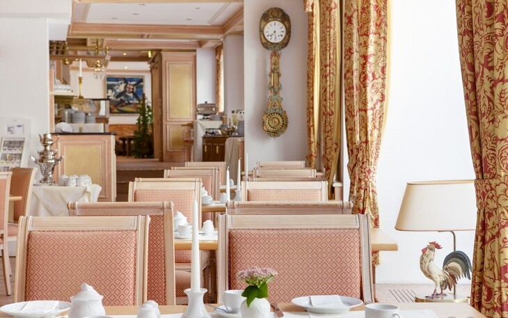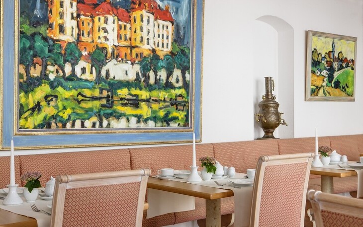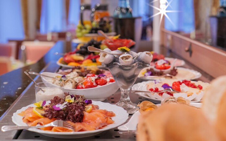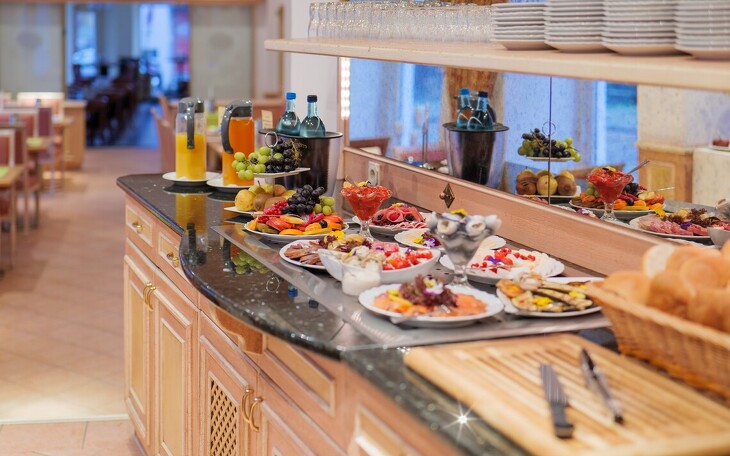 Für den Tag stärken können Sie sich ab 8:00 Uhr (wochentags bis 11:00 Uhr | Wochenende & Feiertage bis 12:00 Uhr) bei einem reichhaltigen Frühstück vom Buffet im gediegenen Ambiente unseres Frühstücksraumes.