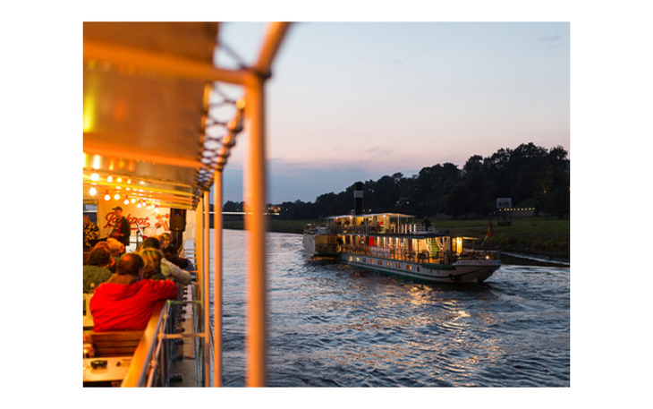 Die beliebte Fahrt startet am Abend in der Dresdner Altstadt am Terrassenufer und führt Sie nach Blasewitz, einem wunderschönen Villenstadtteil Dresdens direkt am „Blauen Wunder“.