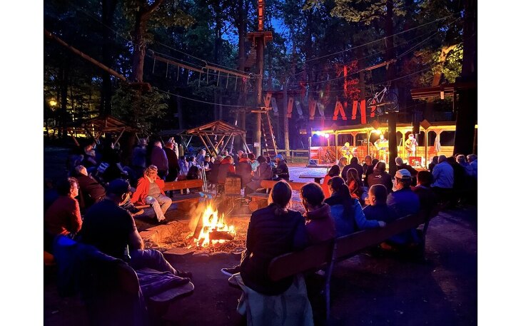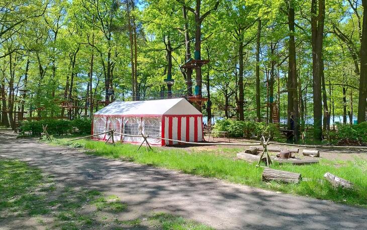 Der Hochseilgarten Moritzburg im ehemaligen Mittelteichbad ist eine ganz besondere Location, um einen Geburtstag, Schuleinführung, Hochzeit, Firmenfeier, Kundenveranstaltung oder Jubiläum mit Familie, Freunden, Bekannten und Kollegen zu begehen. Nehmen Sie Platz in einen unserer Sitzgelegenheiten und genießen Sie das besondere Strand-Ambiente direkt am Mittelteich. Für Unterhaltung Ihrer Gäste stehen Ihnen ein kompletter Hochseilgarten mit 3-m-, 4-m-, 5-m- und 10-m-Parcours, zwei Kinderparcours, Strickleiterklettern, Kistenklettern, Bogenschießen/Bogathlon, Kinderarmbrustschießen, Beilwerfen, Kletterwand mit diversen Routen und Geländespiele zur Verfügung. Als weiteres Highlight bieten wir den größten Seilbahn-/Ziplineparcour der Region mit 12 Stationen und 400m rasanter Fahrt. Auch um das leibliche Wohl wird sich gekümmert. Ob Sie es einfach mögen und den Grill anschmeißen oder ein Buffet wünschen, jeder Wunsch wird Ihnen erfüllt. Selbst wenn Sie eine Live-Cooking-Show mit Wildgerichten bevorzugen. Der "Imbiss" hält für Sie regionale Spezialitäten bereit. Von Kaffee von der Dresdner Rösterei Kaffanero, Fassbier vom Brauhaus Radebeul über Wurstwaren von der Genussquelle Radeburg oder jeden Freitag und Samstag Forelle aus dem Räucherofen von der Teichwirtschaft Moritzburg bis hin zu Manufaktureis der Pirnaer Eismanufaktur Manula und Wein vom Winzer Schabehorn oder dem Rothen Gut...die Philosophie heißt: Lokale Qualität für unsere Gäste. Der Abend am Mittelteich wird dann romantisch: Ein Sonnenuntergang direkt über dem Wasser, Lagerfeuer und Gitarrenmusik lassen Sie den Aufenthalt im Hochseilgarten Mittelteich-Bad Moritzburg nicht wieder vergessen.