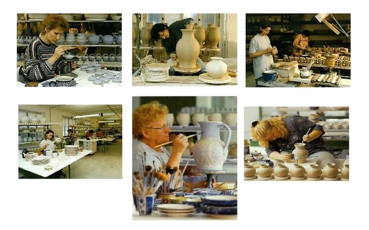 Die Gefäße werden in manufakturartiger Handarbeit gefertigt und ausschließlich per Hand mit Schwämmchen, Pinsel und Malhörnchen bemalt.