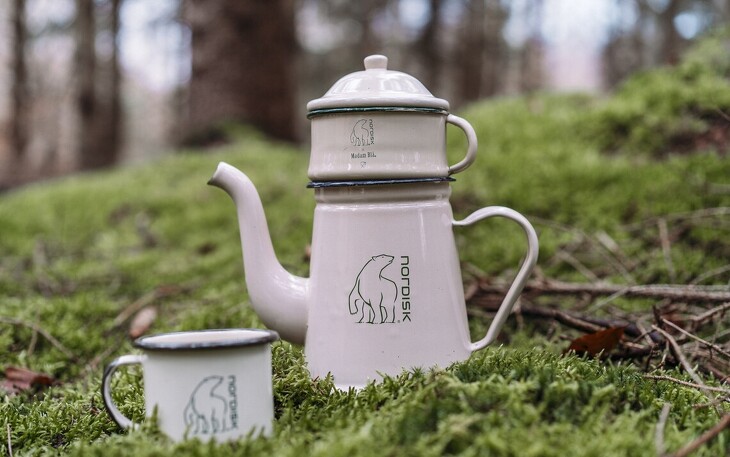 Genieße auf deiner nächsten Glamping Tour einen echten Hygge®-Moment mit einer Kaffeekanne & Bechern voller Erinnerungen.