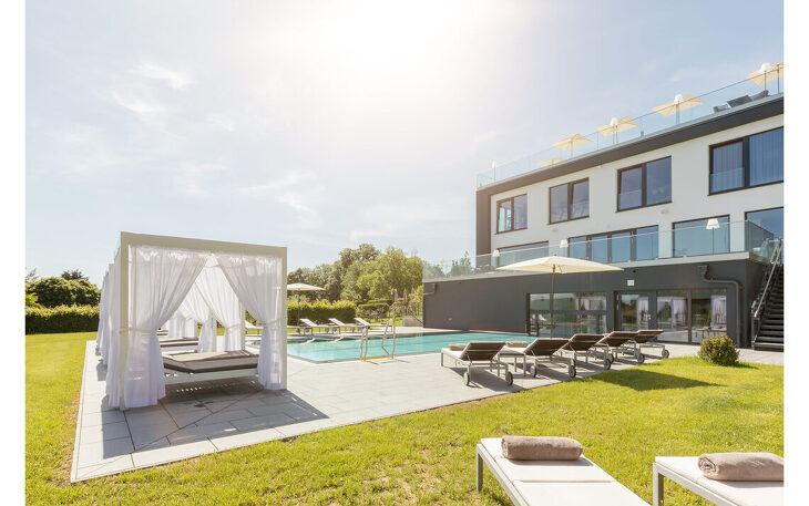 Verbinden Sie Wohlbefinden und Regeneration, stärken Sie Körper und Abwehrkräfte – Wellness pur über 4 Etagen auf 1200 m², mit ganzjährig beheiztem Außenpool – natürlich auch als Day SPA.