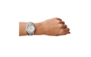 Diese Uhr für Damen ist Teil der Riley-Kollektion von Fossil. Das Gehäuse besteht aus Edelstahl und ist in der Farbe Silber gehalten. Das Uhrenband in Silber ist aus Edelstahl und lässt sich sicher am Handgelenk verschliessen. Mineralglas schützt dieses Accessoire vor Stössen und Schlägen.