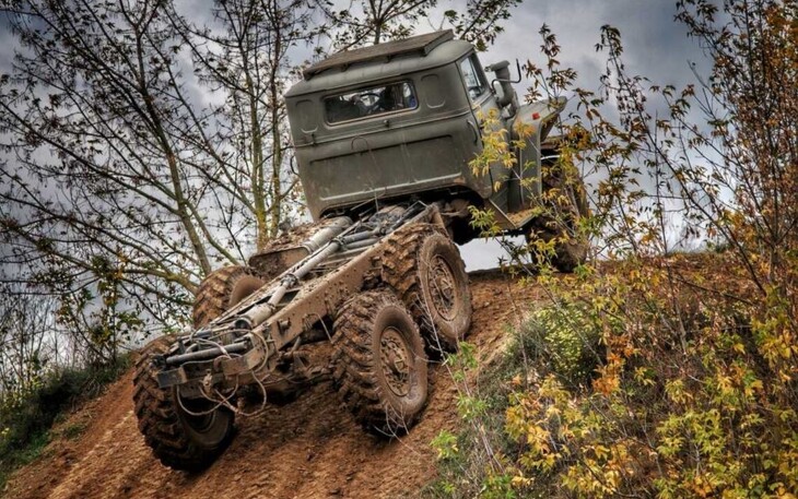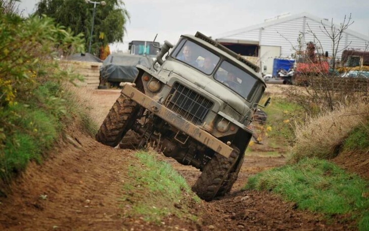 Ural 375 Geländetruck selber fahren und eine Person mitnehmen. Truppen, Nachschub, Munition - Der Ural war das Urgestein der Lastesel des Warschauer Paktes. Das unverwüstliche Ungetüm bahnte sich seinen Weg durch jedes Gelände. Bei uns fährst Du mit einem Ural 375D Benzinmotor, angetrieben mit 3 Achsen (6x6). Erlebe das Fahrgefühl mit diesem russischen Lastkraftwagen, der in der damaligen Sowjetunion für das Militär entwickelt wurde. Bewältige mit dem Ural in unserem einzigartig angelegten, dem anspruchsvollsten Gelände die steilen Anhöhen, tiefen Sandlöcher, Bodenwellen, passiere den Schräghang und jage mit dem Geländetruck durch die Steilkurve des Offroadkessels. Erlebe die Kraft von 210 PS in einem unvergesslichen Fahrerlebnis.