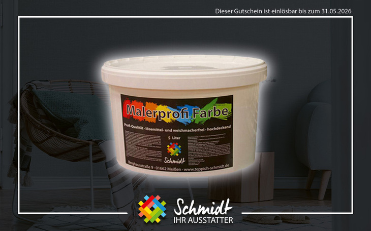 Gutschein für: Wandfarbe Weiß 5l - Schmidt Ihr AUSSTATTER