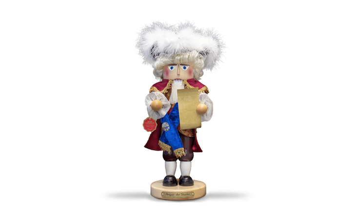 Die exklusiv Sonderedition "August der Starke", welche anlässlich das 350. Geburtstags des sächsischen Kurfürsten liebevoll gestaltet wurde, ist limitiert auf 350 Exemplare. Als besonders Geschenk kann das Schreiben, welches der Nussknacker in der Hand hält, mit Vor- und Zunamen versehen werden und wird damit zu einem einmaligen Sammelobjekt.