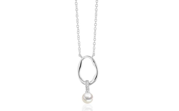 Dieses elegante Collier aus rhodiniertem 925/-Silber besticht durch sein modernes Design und die harmonische Verbindung klassischer und zeitgemäßer Elemente. Im Mittelpunkt steht eine edle Süßwasserzuchtperle, die von funkelnden Zirkonia-Steinen gehalten wird und so einen faszinierenden Glanz entfaltet.