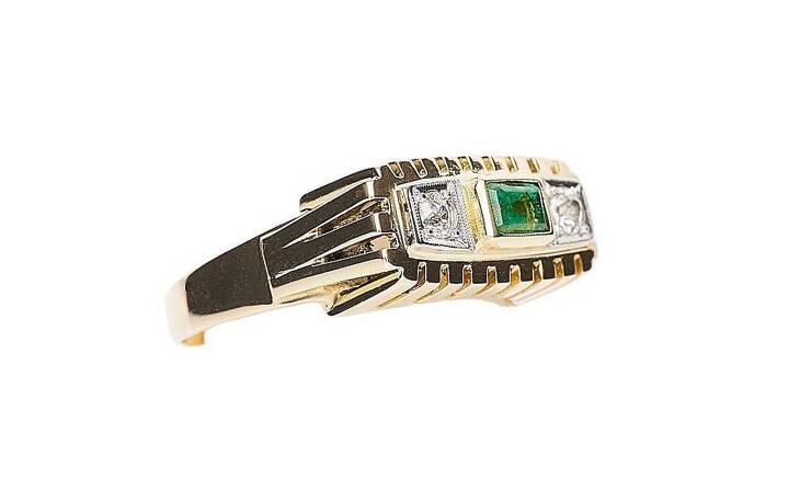 Der Smaragd, der im Zentrum des Rings thront, wird von den zwei Diamanten flankiert.