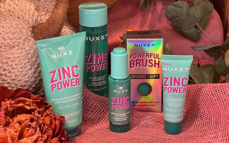 Das exklusive NUXE Zinc Power Set vereint vier perfekt aufeinander abgestimmte Pflegeprodukte: Reinigungsgel, Serum, Lotion und Fluid. Gemeinsam bilden sie eine ganzheitliche Routine für sichtbar klarere, glattere und vitalere Haut.