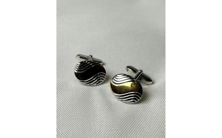 Diese edlen Manschettenknöpfe vereinen zeitloses Design mit moderner Eleganz. Das feine Wellendesign in Gold setzt einen stilvollen Akzent auf dem kühlen Silber und verleiht den Knöpfen eine besondere Tiefe und Dynamik.