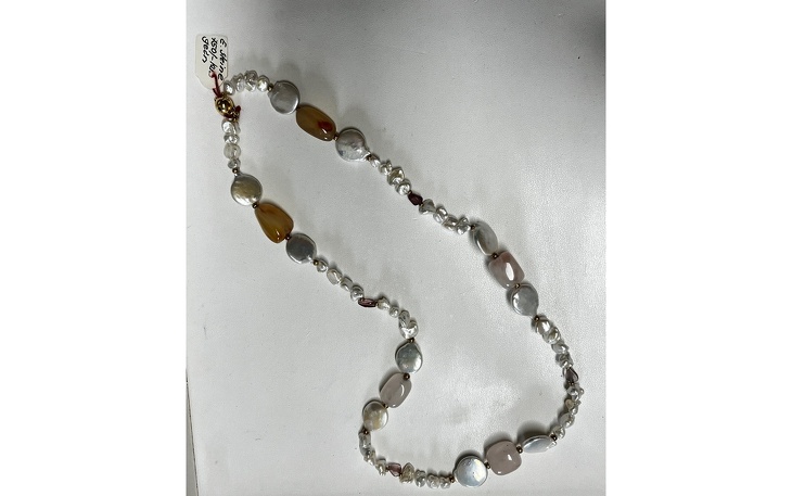 Süsswasserperlkette mit Quarzen und Goldkugeln