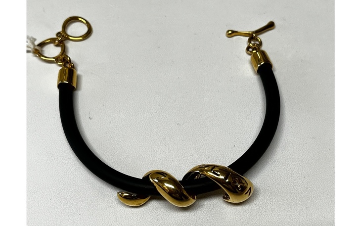 ca. 5mm breites schwarzes Kautschukarmband mit umschlungener Schlange in Edelstahl vergoldet mit Knebelverschluß