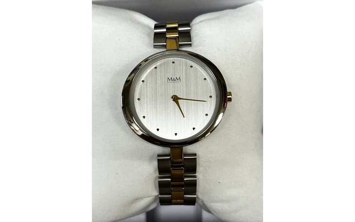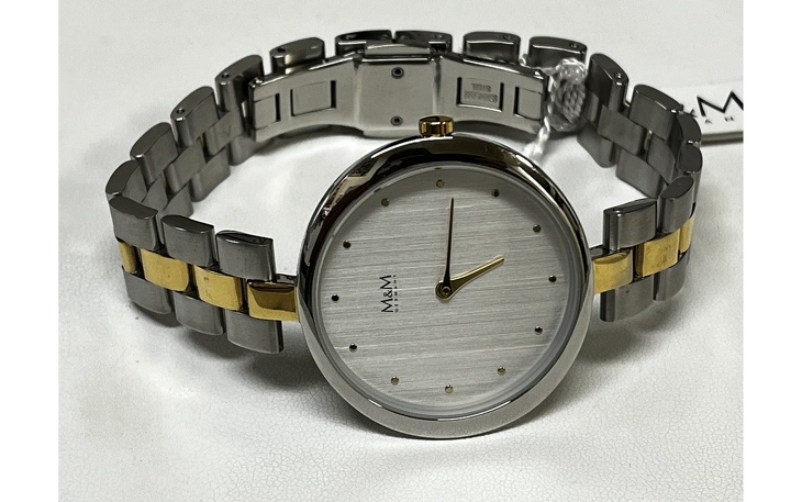 Moderne Uhr mit Metallband Silber-goldfarben und Sicherheitsschliesse