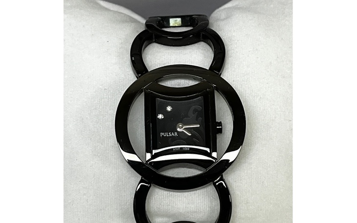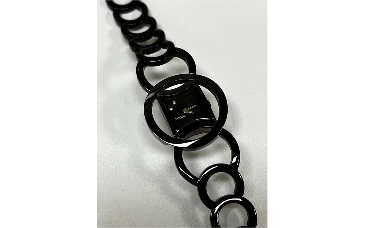 Moderne Uhr mit runden Elementen in schwarz ( Metallband kürzbar )