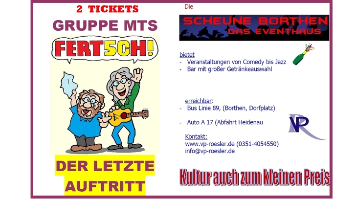 Veranstaltungs- und Partyservice Rösler (VPR) wurde 2008 gegründet und ist seitdem exklusiv Veranstalter in den Unterirdischen Welten Dresden-Lockwitz. Erleben Sie Comedy, Lesungen, Konzerte im ehemaligen Fasskeller der Kelterei Lockwitzgrund. Wir gestalten aber auch gern Ihre private oder Firmen-Feier mit einem Showteil aus. Besuchen Sie uns auf www.vp-roesler.de oder auch www.unterirdische-welten.de