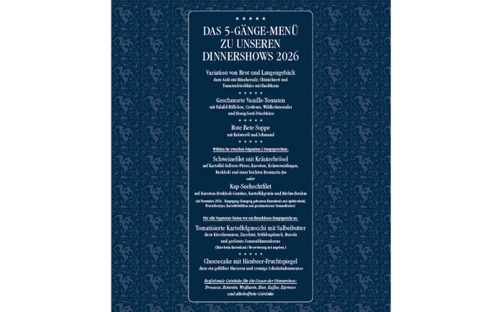 Dinnershow-Krimi für zwei Personen am 21.11.2026 inkl. 5-Gänge-Menü & Getränke,