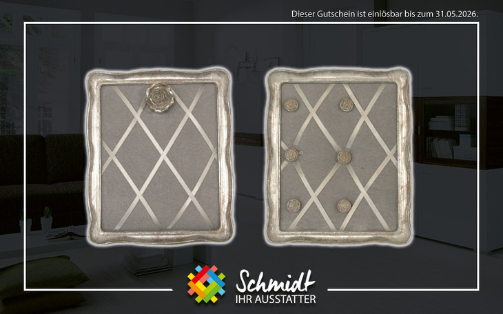 Elegantes 2-teiliges Memotafel-Set im edlen Barock-Stil – ein echter Blickfang für Wohn- oder Arbeitsbereich. Die Tafeln aus hochwertigem Harz-Mix sowie Samtbezug überzeugen mit kunstvollen Verzierungen und stilvollem Charme.