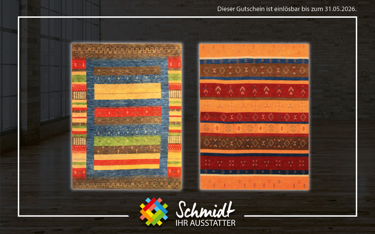 Mit diesem Gutschein erhalten Sie einen farbenfrohen, handgefertigten Teppiche aus 100 % reiner Wolle. Sie verleihen jedem Raum Wärme und Charakter. Wählen Sie zwischen zwei einzigartigen Designs – perfekt, um Stil und Gemütlichkeit harmonisch zu verbinden.