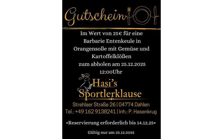 Gutschein für 1 Entenkeule zum Weihnachtsessen