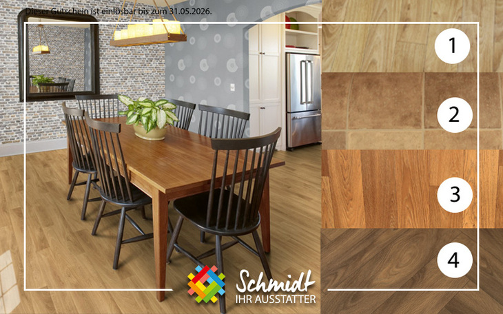 Dieser Gutschein bietet Ihnen die Möglichkeit einen hochwertigen PVC-Bodenbelag in 2m Breite zu erwerben. Wählen Sie aus verschiedenen stilvollen Designs, den perfekt zu Ihrem Wohn- oder Arbeitsbereich passenden.