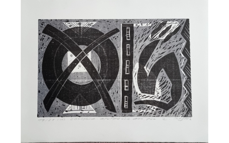 Grafik (Holzschnitt Mehrfachdruck unterschiedliche Grauwerte) aus dem Nachlass von Dietrich Arlt