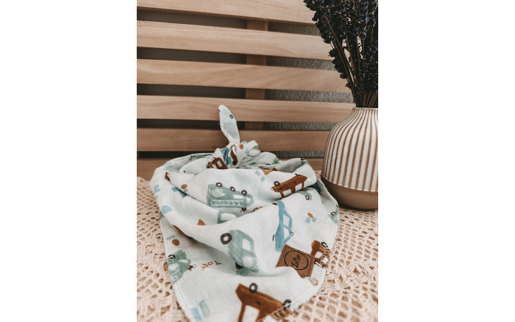 Dieses süße Musselintuch 65x65 cm wurde mit viel Liebe genäht und ist der perfekte Begleiter für kleine Abenteurer. Es kann von Kindern zwischen 2 und 6 Jahren getragen werden.